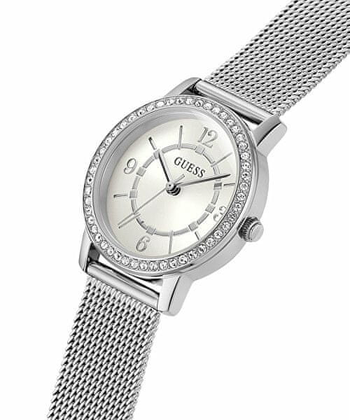 Se radi okrasite s stilskimi dodatki, ki jih res ne gre zgrešiti? Potem boste nad urami Guess dobesedno navdušeni. Njihovo ohišje vas očara že na prvi pogled s steklenimi kamenčki, ki se iskrijo ob vsakem vašem gibu. Uro pritrdite na zapestje s popolnoma prilagodljivim milanskim zategom. Celoten opis