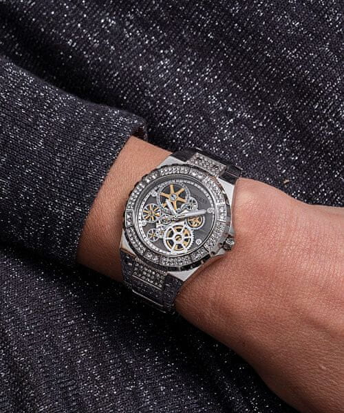 Naj vas očara unikatna ura modne znamke Guess . Ura bo pritegnila pozornost z ohišjem, v celoti obloženim z bleščečimi kristali . Vleč iz nerjavečega jekla se mu popolnoma ujema. Luminescenčne roke zagotavljajo odlično berljivost. Luksuzne ure Reveal so kos nakita, ki mu nikoli ne bo dolgčas.