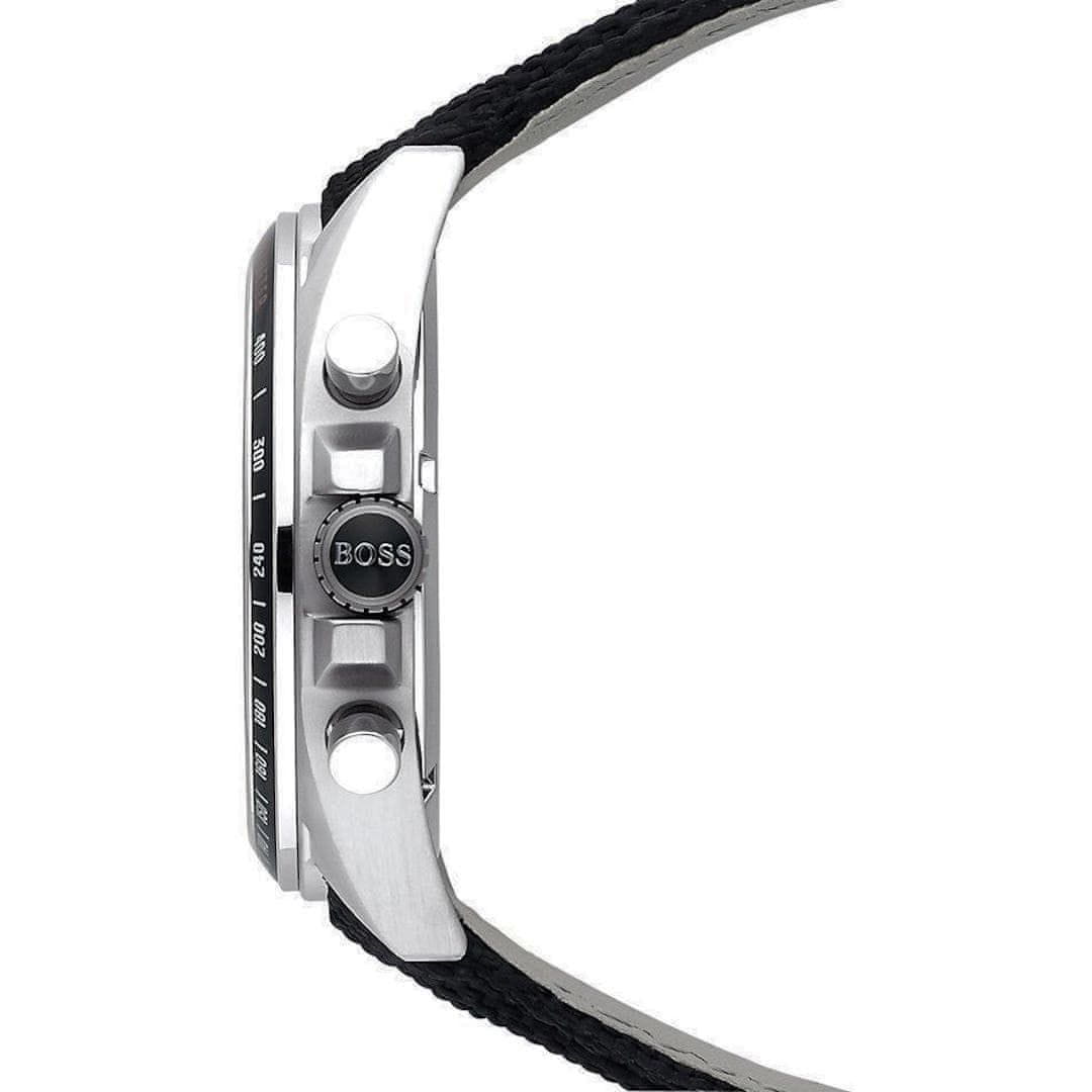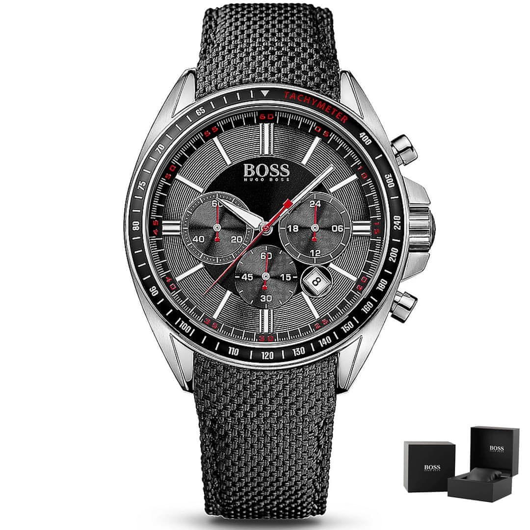Moška ročna ura Hugo Boss Driver 1513087 je privlačna in funkcionalna ura. Klasična oblika številčnice je enostavno dovršena. Kljub številnim funkcijam ura uspe ohraniti prefinjeno eleganco. Kombinacija usnjenega in tekstilenga paščka pa poskrbi, da je ura zelo udobna za nošenje.