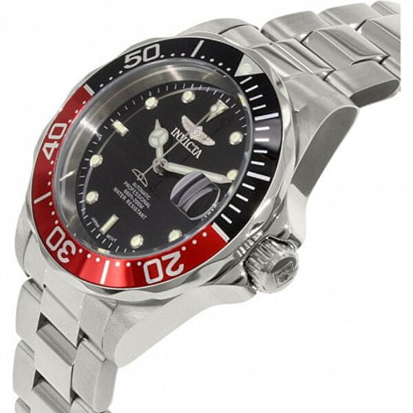Ura Pro Diver Automatic iz delavnice Invicta je kot nalašč za vse moške, ki uživajo v vodnih športih in se hkrati želijo okrasiti z elegantnim dodatkom. Črna številčnica pritegne pogled že na prvi pogled s svetlečimi kazalci in kazalci, ki zagotavljajo popolno berljivost tudi pri zmanjšani vidljivosti. Tu je tudi potreben prikaz datuma s povečevalnim steklom na poziciji 3. Ura je v celoti izdelana iz najkakovostnejšega nerjavečega jekla. V notranjosti ohišja za natančno delovanje skrbi mehanizem s samodejnim navijanjem in rezervo moči do 41 ur. Zagotovo vas bo razveselila vodoodpornost do 200 metrov, zahvaljujoč kateri se lahko z uro celo potapljate. Stavite na dodatek, ki bo postal nepogrešljiv spremljevalec vsake vaše avanture.