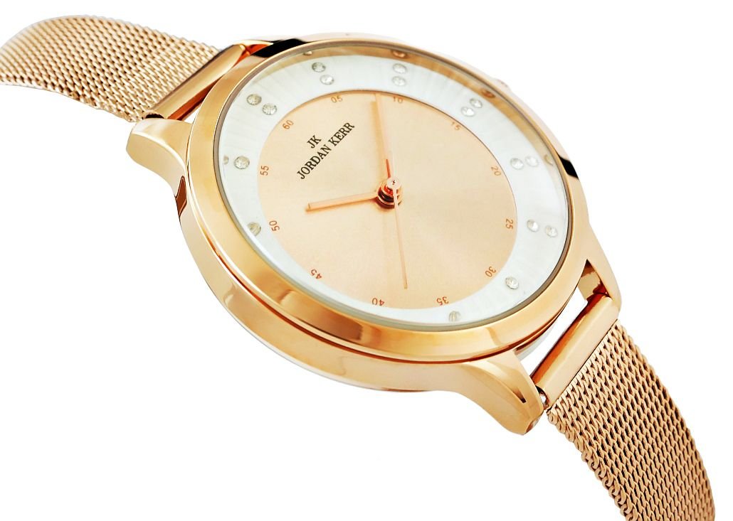 Številčnica: bela in srebrnaKaze: cirkoniKazalci: rožnato zlatoDrugi kazalec: rožnato zlatoZapestnica: rožnato zlato
