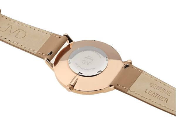 Ure češke znamke JVD so ustvarjene za ženske, dame in mladenke, ki iščejo svoj najljubši kos za vsak stil oblačenja. Biserna številčnica, ki uri daje eleganco in stil, bo pritegnila vašo pozornost. Na pozlačeno ohišje iz plemenitega jekla je pritrjen usnjen pašček s sistemom easy-click, zahvaljujoč kateremu ga preprosto snamete in kombinirate glede na svoje razpoloženje. Všeč vam bo minimalističen slog ure.