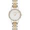 Ženska zapestna ura Na baterije Premer ohišja 33,0 mm Ohišje v obliki kroga Kovinsko ohišje Srebrna/zlata barva ohišja Kovinski mehanizem Srebrna/zlata barva mehanizma Ročice številčnice Biserna barva številčnice Številka z dvanajstimi indeksi Material stekla – mineralno steklo Vodoodporno pri običajni obrabi