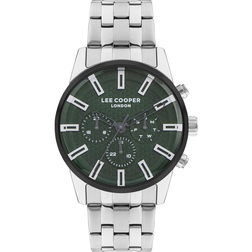 Moška ročna ura Baterijsko napajanje Premer ohišja 45,0 mm Ohišje v obliki kroga Kovinsko ohišje Srebrna barva ohišja Kovinski mehanizem Srebrna barva mehanizma Ročna številčnica Zelena barva številčnice Številka z dvanajstimi indeksi Material stekla – mineralno steklo Vodoodporno pri običajni obrabi