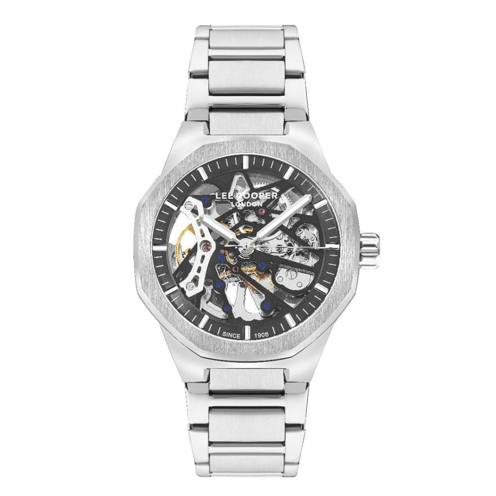 Moška zapestna ura Mehanski mehanizem Premer ohišja 43,0 mm Ohišje v obliki osmerokotnika Kovinsko ohišje Ohišje srebrne barve Kovinski poteg Srebrna barva vleka Ročna številčnica Material stekla – mineralno steklo Vodoodporno za običajno nošenje