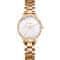 Ženska zapestna ura Napajanje na baterije Premer ohišja 30,0 mm Ohišje v obliki kroga Kovinsko ohišje Ohišje v barvi rožnatega zlata Kovinski poteg Rožnato zlata barva vleka Ročna številčnica Biserna barva številčnice Številčnica z dvanajstimi indeksi Material stekla – mineralno steklo Vodoodporno za običajno nošenje