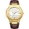 Moška zapestna ura Napajanje na baterije Premer ohišja 42,0 mm Ohišje v obliki kroga Kovinsko ohišje Ohišje zlate barve Rjava barva vleka Ročna številčnica Srebrna barva številčnice Številčnica z dvanajstimi indeksi Material stekla – mineralno steklo Vodoodporno za običajno nošenje