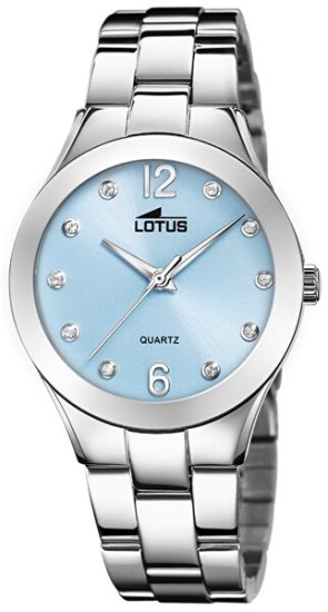 Lotus Bliss L18884/3 prinaša svežo eleganco v sodobnem konceptu. Modra številčnica v kombinaciji s kamnitimi indeksi ustvarja vtis lahkotnosti, sijaja in čistega sloga.