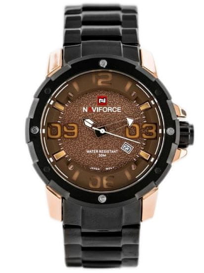 Barve: rjava številčnica, črna zapestnica in prstan, ohišje iz rožnatega zlata, zlate številke.