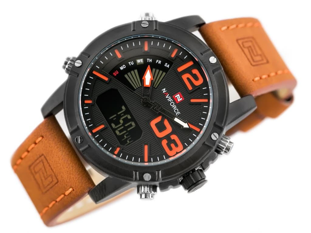 NaviForce Moške analogne in digitalne ure s škatlo Cyclone Oranžna