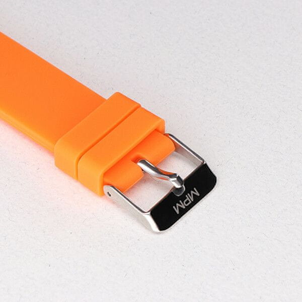 Športna otroška ura MPM Quality navduši že na prvi pogled s svojim oranžnim dizajnom. Številčnico ure krasijo izraziti svetleči kazalci v kombinaciji s številčnimi indeksi. Ura se na zapestje pritrdi z udobnim silikonskim paščkom. Najmanjša dolžina traku je 17 cm, največja 21 cm.