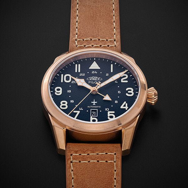 Pozor, ljubitelji letalstva in češkega letalstva! Prihaja nekaj posebnega – omejena izdaja ure PRIM Pilot Dual Time, ki je poklon letalstvu. Zahvaljujoč peskani številčnici ter luminiscenčnim kazalcem in indeksom je berljivost ure popolnoma popolna v vseh pogojih. Za vsakega poznavalca so na voljo podrobnosti, kot sta indikator bočnega zdrsa na položaju 12 in silhueta letala Albatros L-39, ki jo najdemo tako na številčnici kot na sekundarju. Ohišje iz nerjavečega jekla v rožnatem zlatu in prozoren zadnji del, ki razkriva serijsko številko, ji dajeta edinstven videz. Srce ure je zanesljiv japonski kaliber Seiko NH34, na roki pa jo drži eleganten, ročno šivan usnjen pašček .