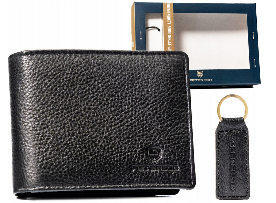 Darilni komplet: majhna moška usnjena denarnica in obesek za ključe – Peterson Celoten opis