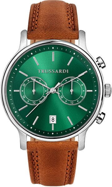 Elegantni moški komplet Trussardi T-Inedito R2453174001 združuje sodoben dizajn s praktično prilagodljivostjo. Dominantna značilnost ure je značilna zelena številčnica s finim sončnim zaključkom, ki jo dopolnjujeta dva kronografska podštevilčnica in diskreten prikaz datuma na šestem mestu. Ohišje iz nerjavečega jekla se ujema z mehanizmom Link Steel, kar zagotavlja udobje in vzdržljivost med vsakodnevno nošenjem. Paket vključuje tudi rezervni rjav usnjen pašček, zahvaljujoč kateremu se ura zlahka preoblikuje v bolj elegantno možnost za formalne priložnosti. Ta komplet je idealna izbira za moške, ki cenijo kakovost, stil in možnost prilagoditve videza svojim trenutnim potrebam.