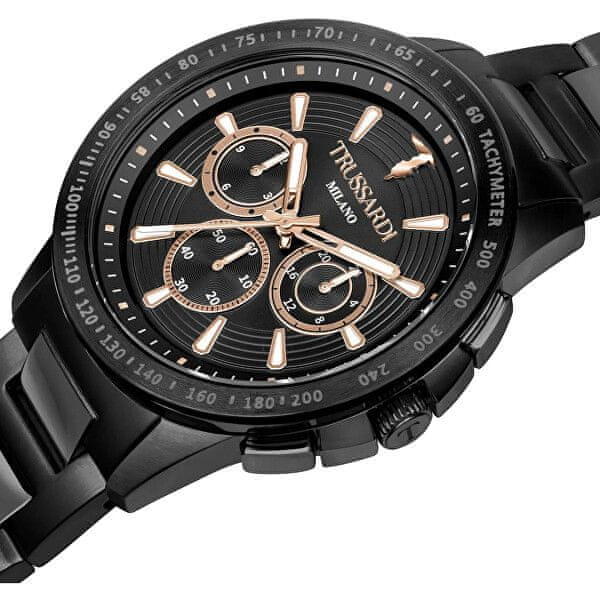 Italijanska moda je koncept. Zagotovite si eleganten modni dodatek italijanske znamke Trussardi. V uro T-Hawk se boste zaljubili na prvi pogled. Njihovo ohišje in sprožilec sta izdelana iz najkakovostnejšega nerjavečega jekla. Črna številčnica vsebuje tri kronografe s funkcijo štoparice. Celoten opis