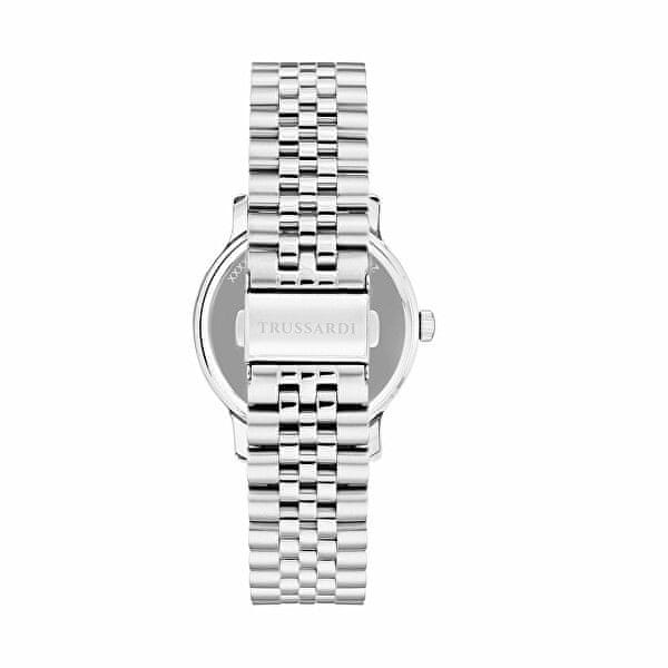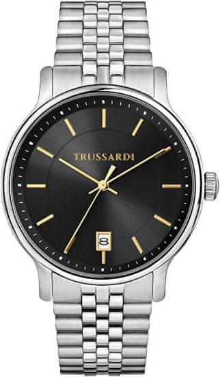 Elegantna moška ura Trussardi T-Inedito R2453174004 je kombinacija klasičnega minimalizma in razkošnega dizajna. Črno številčnico s satenastim učinkom poudarjajo zlati kazalci in indeksi, ki modelu dajejo subtilen pridih prefinjenosti. Okence za datum na položaju 6. ure poudarja praktičen značaj ure, ohišje in mehanizem iz nerjavečega jekla pa delujeta robustno in vzdržljivo. Zahvaljujoč natančni izdelavi in univerzalnemu dizajnu bo ta ura postala idealen spremljevalec za vsakodnevno nošenje in formalne priložnosti.