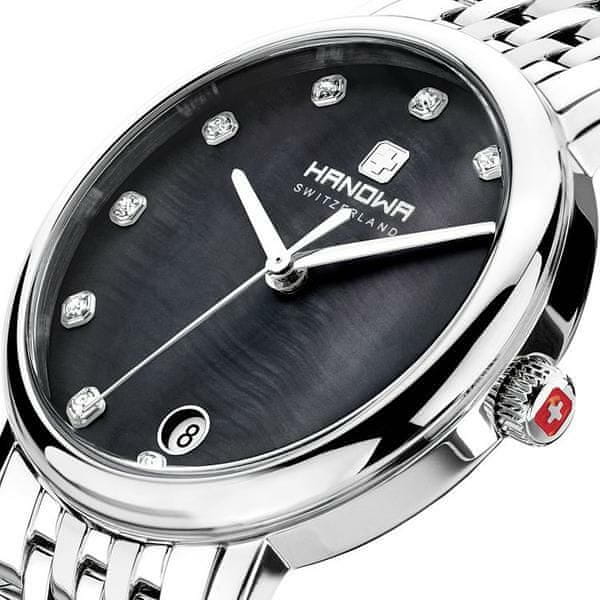 Zelo elegantna, kakovostna ura, ki ponosno nosi oznako „Swiss Made“. To so ure Hanowa, nabavite jih in ne bo vam žal. Ohišje in sprožilec sta izdelana iz nerjavečega jekla. Še posebej vam bo všeč številčnica zaradi bisernih odsevov in indeksov, ki jih predstavljajo bleščeči cirkoni. Celoten opis