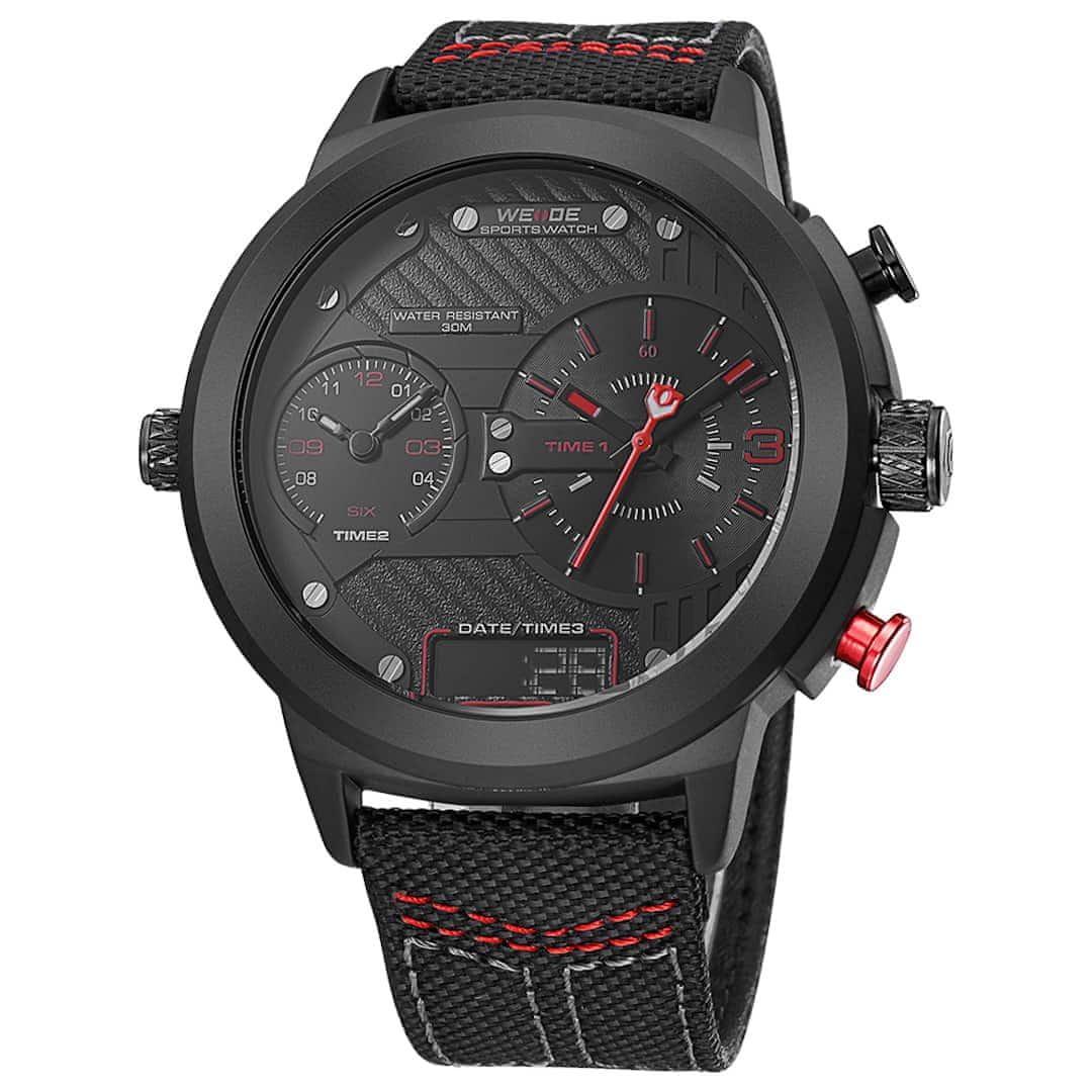 Ročna ura Weide ponuja možnost prikaza kar treh različnih časov. Dva prikazuje analogno enega pa digitalno.