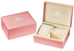 Elegantne, funkcionalne in vsestranske – to so ure Festina, ki bodo postale vaš popoln modni dodatek. Njihova roza številčnica je odlično berljiva zahvaljujoč značilnim indeksom in elegantnim kazalcem. Na položaju 3 je tudi praktičen prikaz datuma.