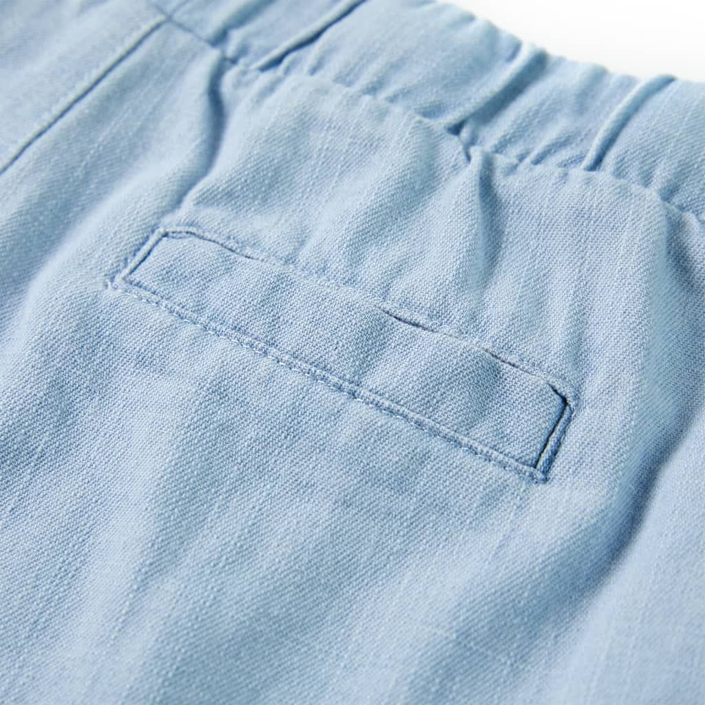 Te otroške kratke hlače imajo elastičen pas z vrvico, 2 sprednja žepa in lažen zadnji žep. Otroške kratke hlače so svetlo modre barve džinsa, ki je modna in se lepo poda k vsem ostalim oblačilom. Otroške kratke hlače so izdelane iz mehkega materiala, ki vključuje 100 % bombaž za udobje in zračnost.