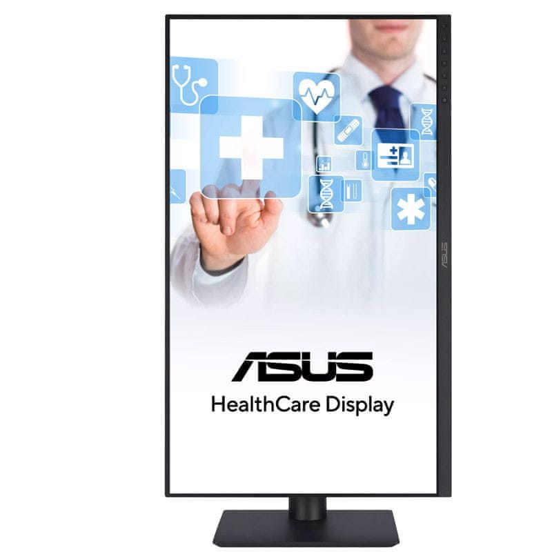 Monitor ASUS HA2741A HealthCare je 27-palčni medicinski zaslon z ločljivostjo QHD (2560 × 1440), zasnovan posebej za potrebe zdravstvenih ustanov. Opremljen je z visoko kakovostno IPS matriko, ki zagotavlja široke kote gledanja in izjemno barvno natančnost. Ključna lastnost monitorja je tovarniška kalibracija v skladu s standardom DICOM Part 14 GSDF, kar zagotavlja natančen in dosleden prikaz sivinskih odtenkov, ki so nujni za pregledovanje rentgenskih slik in drugih medicinskih posnetkov. S tehnologijo AGLR (Anti-Glare, Low-Reflection) in Eye Care+ učinkovito zmanjšuje odseve in ščiti oči osebja med dolgotrajnim delom.