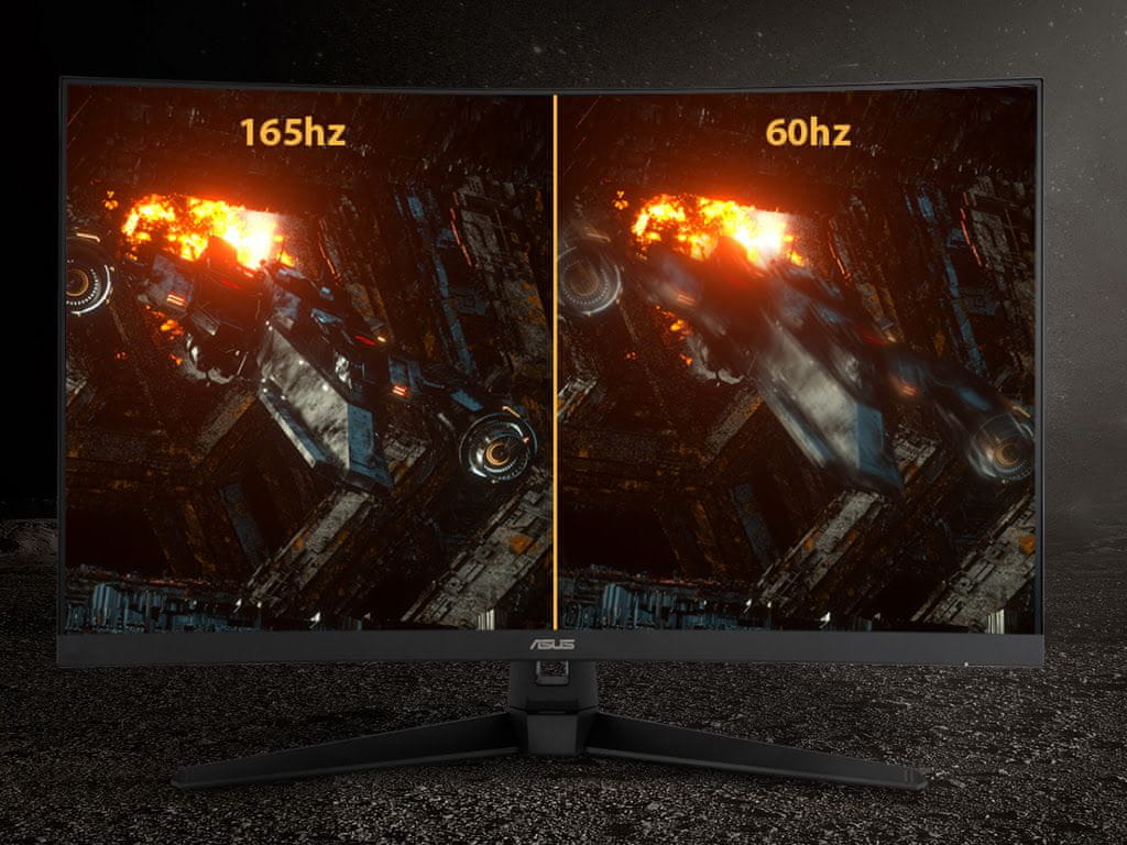 TUF Gaming VG328H1B je 31,5-palčni, Full HD (1920×1080), ukrivljen zaslon s hitro frekvenco osveževanja, zasnovan za igranje iger. Njegov ukrivljen zaslon ima hitrost osveževanja 165 Hz in tehnologijo Adaptive-Sync (FreeSync™ Premium) za izjemno tekoče igranje brez trganja in zatikanja grafike.