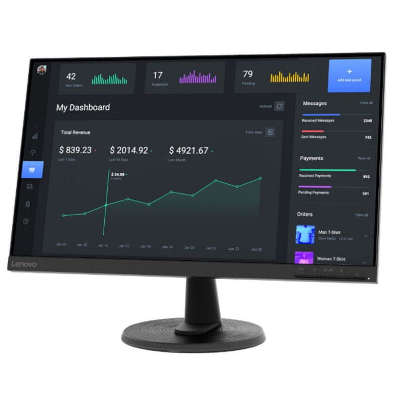 Monitor Lenovo D27–40 se ponaša s 68.58 cm (27") veliko diagonalo, ki prikazuje sliko v osupljivi Full HD ločljivosti (1920 × 1080). Oblikuje ga VA tehnologija, 75 Hz osveževanje, HDMI, VGA in najkrajši odzivni čas 5 ms.