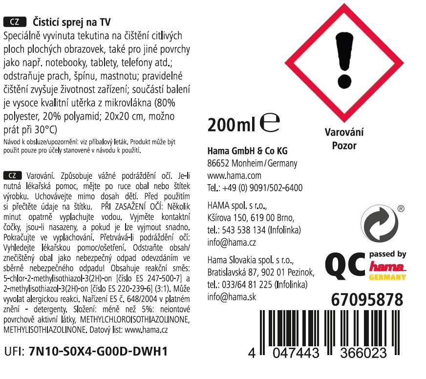 Hama Razpršilo za čiščenje televizorjev, 200 ml, vključno z robčkom