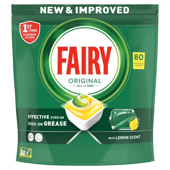 Tablete za pomivalni stroj Fairy Original Lemon vse v enem, 80 kapsul Celoten opis
