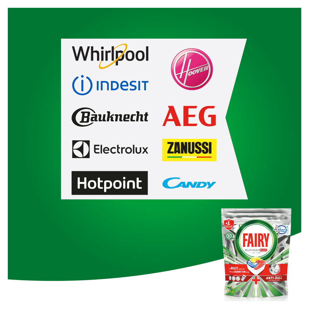 Hitro čiščenje (učinkovito v kratkih ciklih, kot pri vseh različicah Fairy Platinum Plus). Zahvaljujoč tehnologiji Deep Clean odstranijo do 99 % vidnih in nevidnih ostankov hrane. Sistem predpomivanja to stori namesto vas in vam omogoča prihranek vode. Učinkovite v okolju prijaznem ciklu pomivanja. Hitro topne kapsule delujejo učinkovito v kratkih ciklih. Priporočajo svetovni proizvajalci pomivalnih strojev. Uporaba soli in enostavno izpiranje skupaj z zaščito stekla in srebra