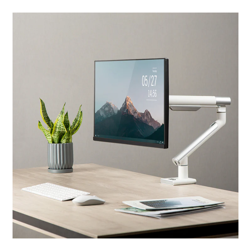 Premium nosilec za monitorje s plinsko vzmetjo ErgoOffice ER-437. Nosilec je zasnovan za monitorje velikosti 17" do 32" z največjo težo 9 kg. Roka je izdelana iz visokokakovostnih materialov – opremljena je s trpežno montažno zaponko, ki omogoča montažo na mizo ali drugo ravno površino.