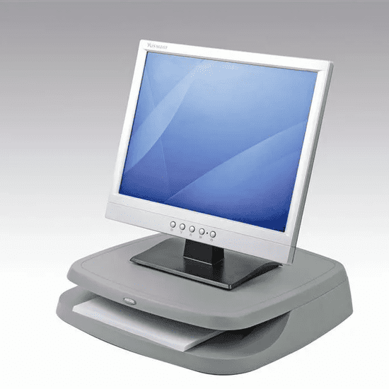 • nastavljiva višina stojala od 75 do 110mm – omogoča izbiro treh položajev- nosilnost do 36 kg – vključno s polico za papir- dimenzije: 196 × 408 × 438 mm