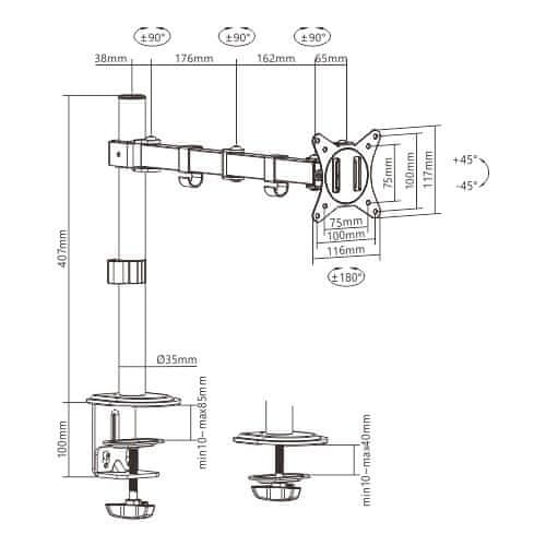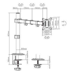 • Rama omogoča vrtenje, raztegovanje, umikanje ali nagibanje zaslona in omogoča obračanje zaslona iz ležečega v pokončni način itd.