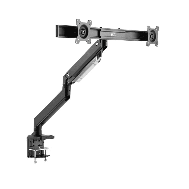 Namizni črni nosilec za dva LCD monitorja od 17″ do 27″, nosilnosti 2 × 8kg. Celoten opis