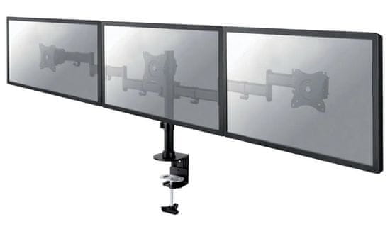 Neomounts NM-D135D3BLACK; Prilagodljiv namizni nosilec VESA za 3 ploske monitorje LCD z diagonalo od 10" do 27" in težo do 24 kg (3 × 8 kg). Celoten opis