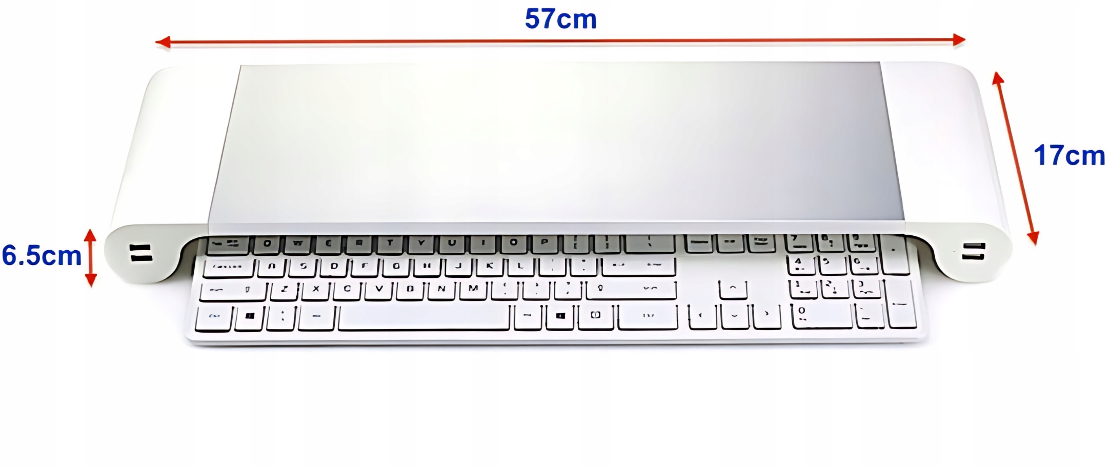 . Njegove kompaktne dimenzije (širina 57 cm, globina 17 cm) pomenijo, da se bo prilegal tudi na manjše mize, ne da bi zavzel preveč prostora. Elegantno črno ohišje se popolnoma zlije z večino računalniške opreme . Ali se bosta pod stojalo prilegala tipkovnica in miška? Da, ena glavnih prednosti tega stojala je ustvarjanje dodatnega prostora na vaši mizi. 6,5 cm višine vam omogoča shranjevanje tipkovnice in miške pod stojalom, ko ju ne uporabljate, kar pomaga ohranjati vašo urejeno. To omogoča