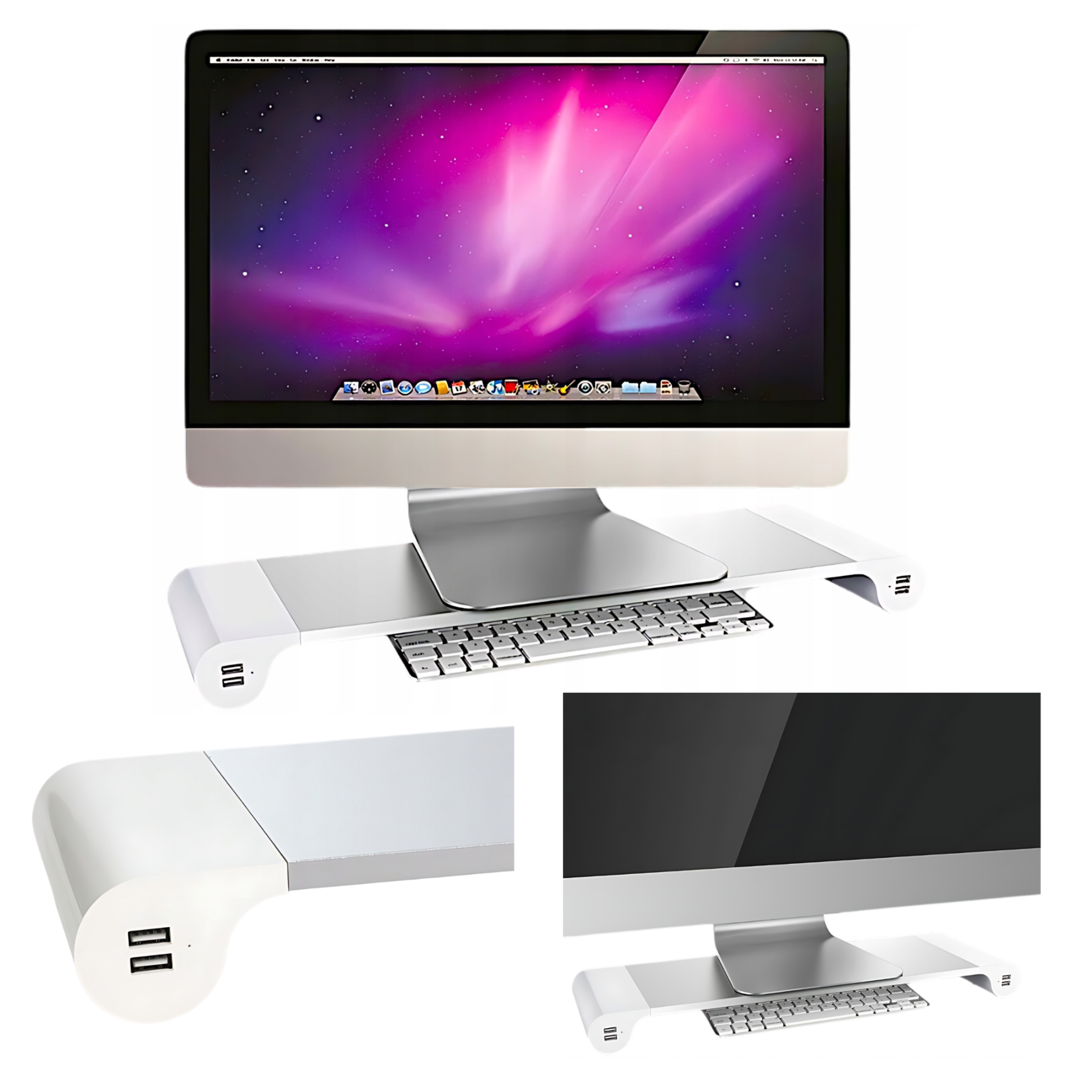 je preprosto, a izjemno učinkovito orodje za izboljšanje ergonomije vaše delovne postaje . Izboljša udobje in dobro počutje pri delu z dvigom zaslona na optimalno višino , tako da vam ni treba sklanjati glave ali se sklanjati . To preprečuje kronične bolečine v vratu in hrbtu , ki so pogoste pri ljudeh, ki preživijo dolge ure pred računalnikom . Pravilno nameščen monitor tudi zmanjša utrujenost oči , kar vam omogoča, da delate dlje in bolj produktivno . Vgrajena 4 vrata USB za priročno polnjenje naprav