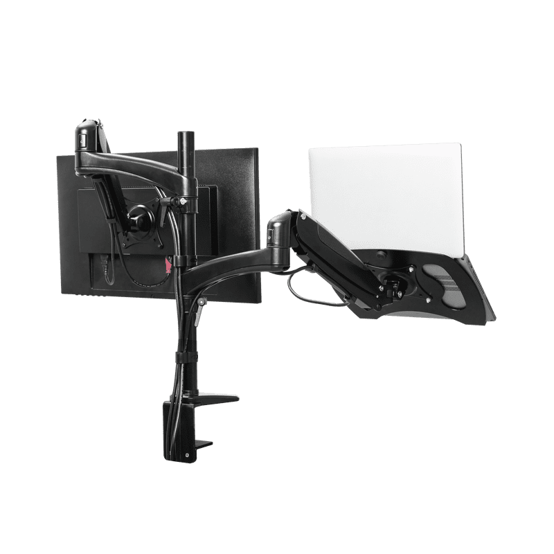 Skladnost z monitorjem do 32" (VESA 75×75 in 100×100) Združljivost s prenosnim računalnikom do 17" Največja nosilnost 16 kg Nastavljiva višina do 50 cm Vrsta pritrditve s sponko (za plošče do 7 cm) Kovinska in plastična konstrukcija Vodenje kablov Teža 5,6 kg Barva črna