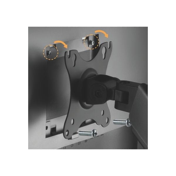 Držalo lahko uporabljate z različnimi vrstami monitorjev. Zasnovan je za dva monitorja z diagonalo od 17" do 32". Vzdržljive jeklene roke so nameščene druga ob drugi. Vsaka lahko prenese težo do 9 kg. Mehanske vzmeti omogočajo prilagoditev togosti glede na težo zaslonov.