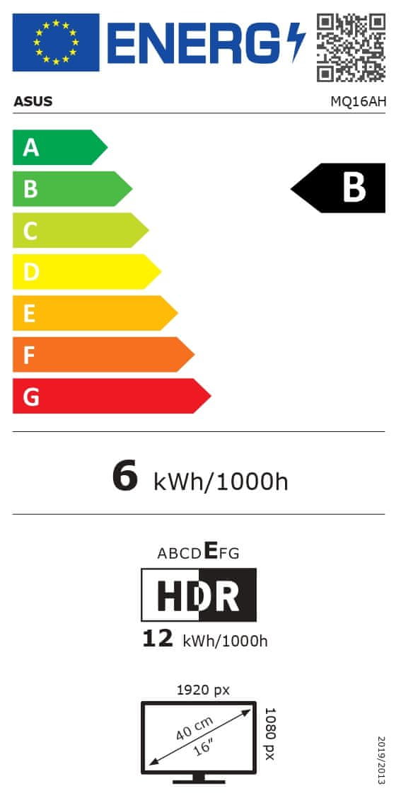 Asus | Monitor | MQ16AH | 15,6" | OLED | 16:9 | 60 Hz | 1 ms | Ne | 1920 × 1080 | 360 cd/m² | HDMI vhodi 1 Celoten opis