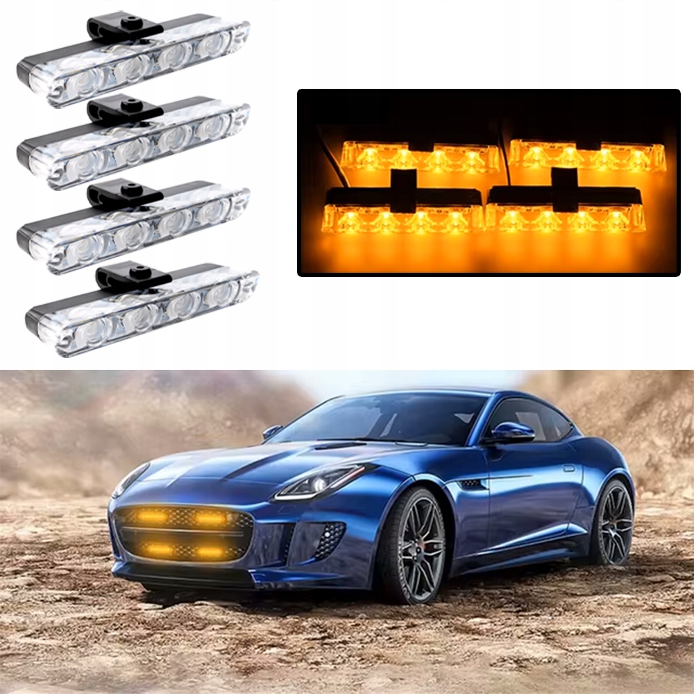4× LED ORANŽNA UTRIPAJOČA OPOZORILNA LUČKA DALJINSKI UPRAVLJALNIK STROBOSKOČNA LUČ V ODBIJAČU Celoten opis