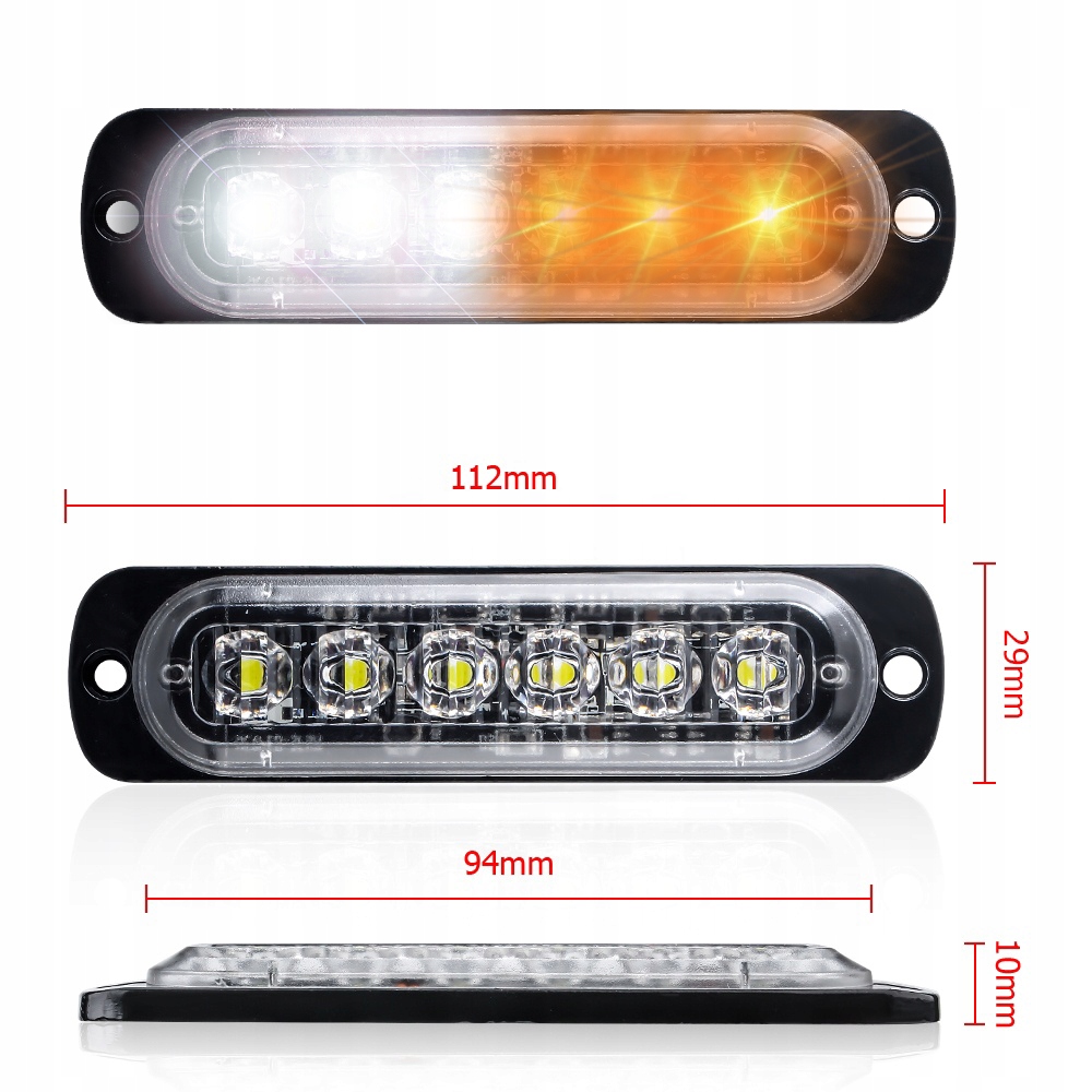 • Število diod: Vsaka svetilka ima 3 bele LED diode in 3 oranžne LED diode .