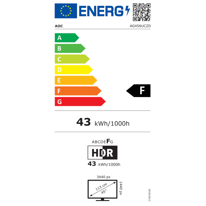 AOC Agon PRO AG456UCZD je 44,5-palčni (113 cm) ukrivljen OLED monitor z ločljivostjo WQHD (3440 × 1440) in frekvenco osveževanja 240 Hz, ki prinaša vrhunsko tekočo sliko in izjemen kontrast 150.000 : 1. Opremljen je z USB-C priklopom z napajanjem do 90 W (PD 3.0) ter zmogljivimi zvočniki (2 × 8 W). Ukrivljenost 800R zagotavlja popolno potopitev v vsebino, stojalo pa omogoča nastavitev višine, nagib in zasuk.