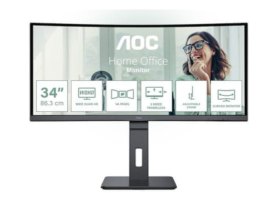 AOC CU34P3CV 34" VA WQHD 100Hz USB-C ergonomski ukrivljen pisarniški monitor