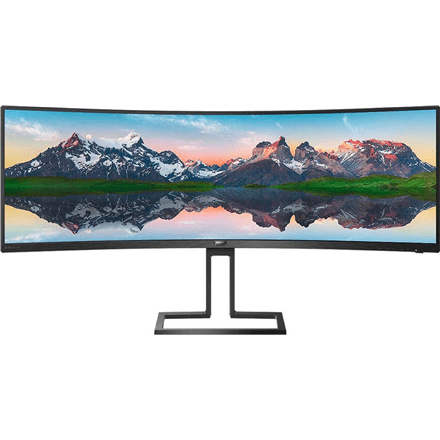 Philipsov ukrivljeni LCD-zaslon 498P9/00 48,8 palcev, dvojni QHD, 5120 × 1440 slikovnih pik, VA, 32:9, črn, 5 ms, 450 cd/m², izhod za slušalke, 70 Hz, sistem W-LED, količina vrat HDMI 2