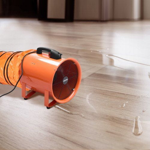 Ta prenosni ventilator je zasnovan za močno in učinkovito prezračevanje v različnih industrijskih in komercialnih okoljih. Idealno za uporabo v kleteh delavnicah skladiščih in gradbiščih učinkovito odstranjuje dim vonjave in vroč zrak ter ohranja varen in udoben delovni prostor. Njegova trpežna konstrukcija in prenosna zasnova zagotavljata zanesljivo delovanje in enostaven transport zaradi česar je primeren tako za začasne kot trajne prezračevalne potrebe.