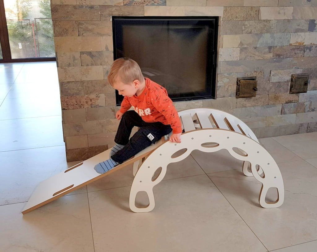 Starejši otroci radi plezajo. Dobro vemo, da so v njihovih očeh stoli in fotelji ogromne gore, ki jih je treba preplezati. Gugalnica bo tako varen in popoln pripomoček za učenje plezanja, spuščanja in drsenja.
