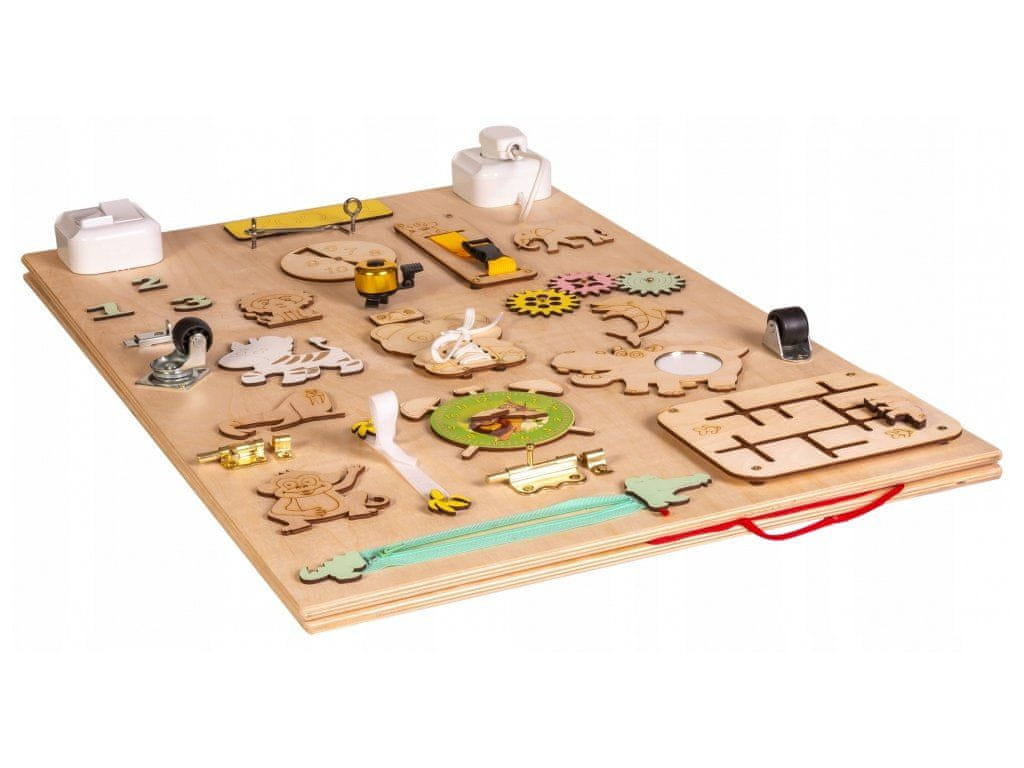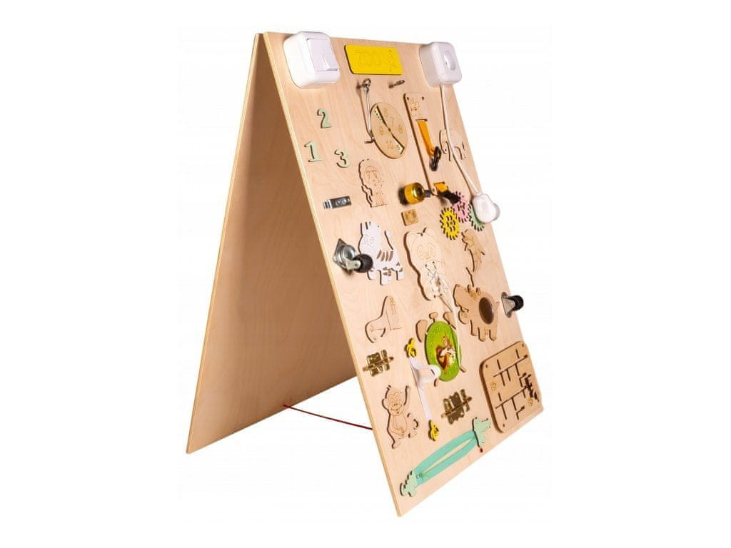 Na eni strani table majhne ročice odkrijejo spodbude za spodbujanje logičnega razmišljanja.