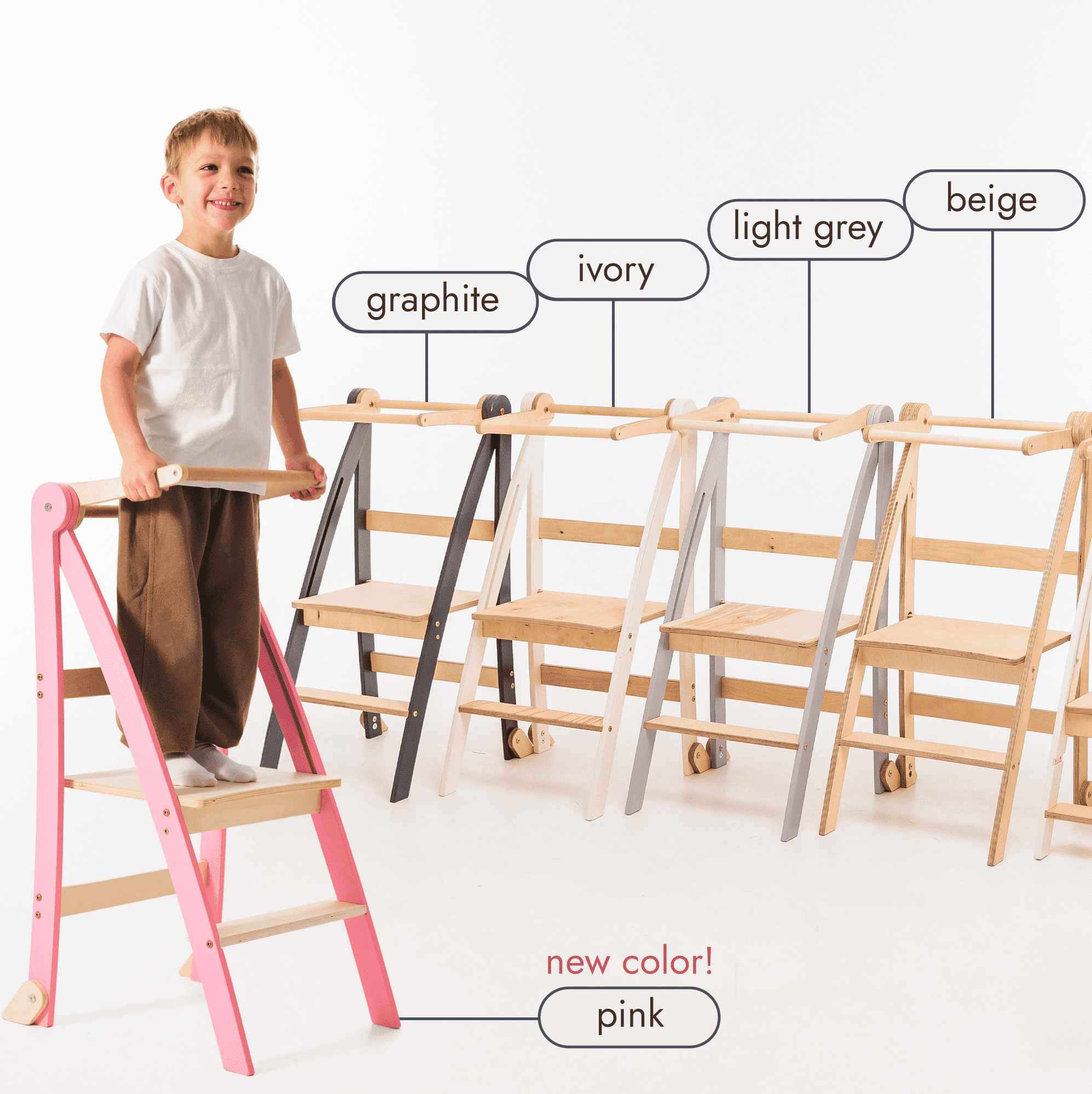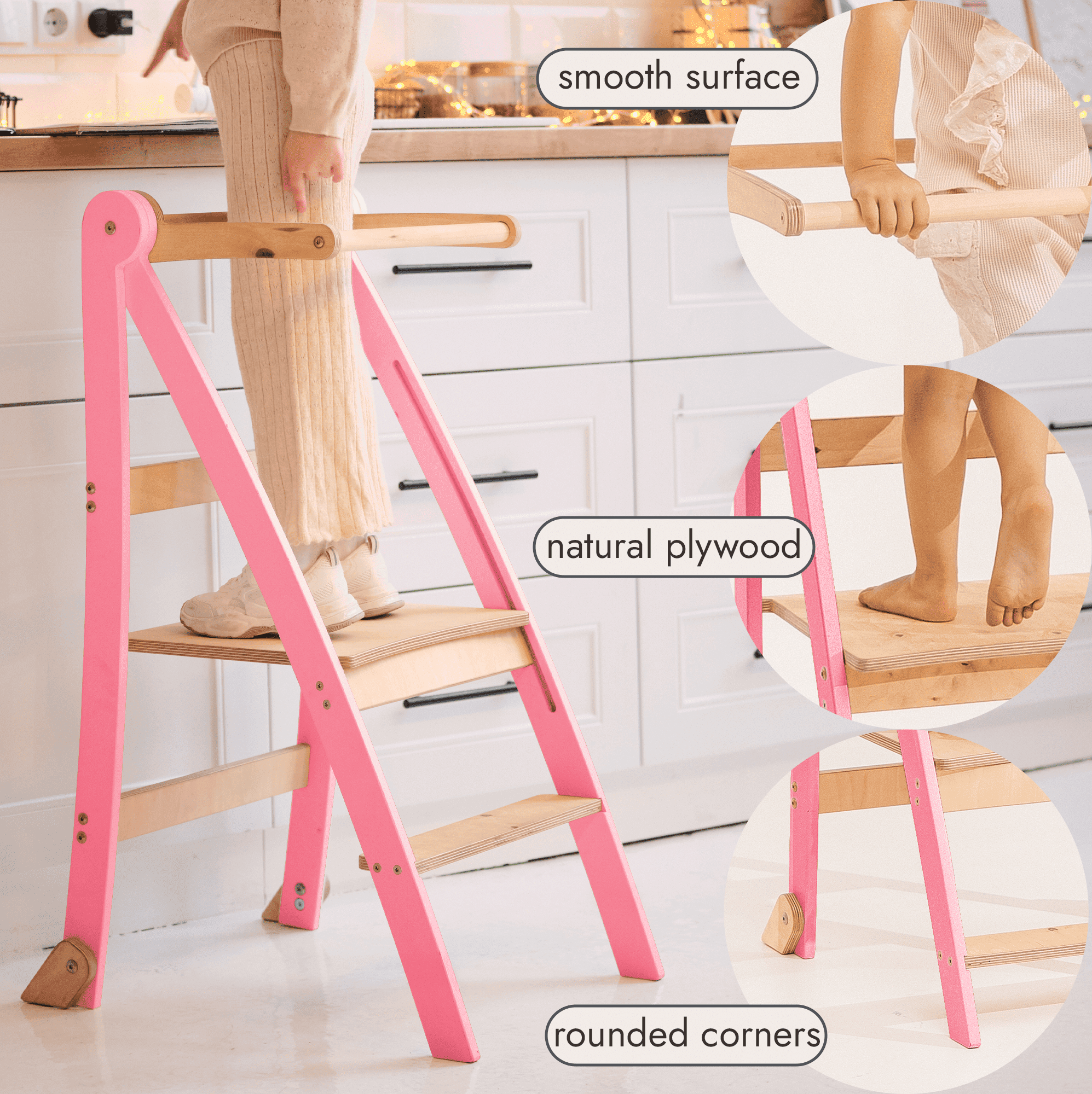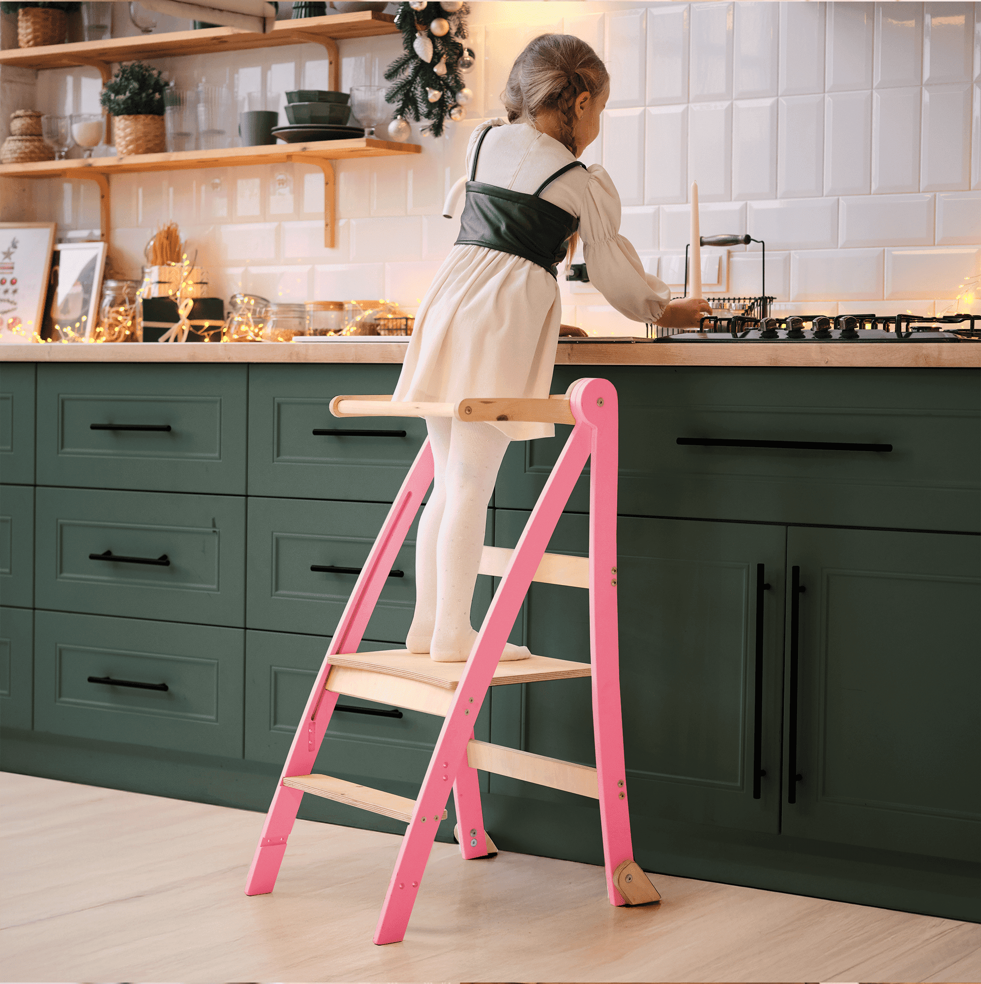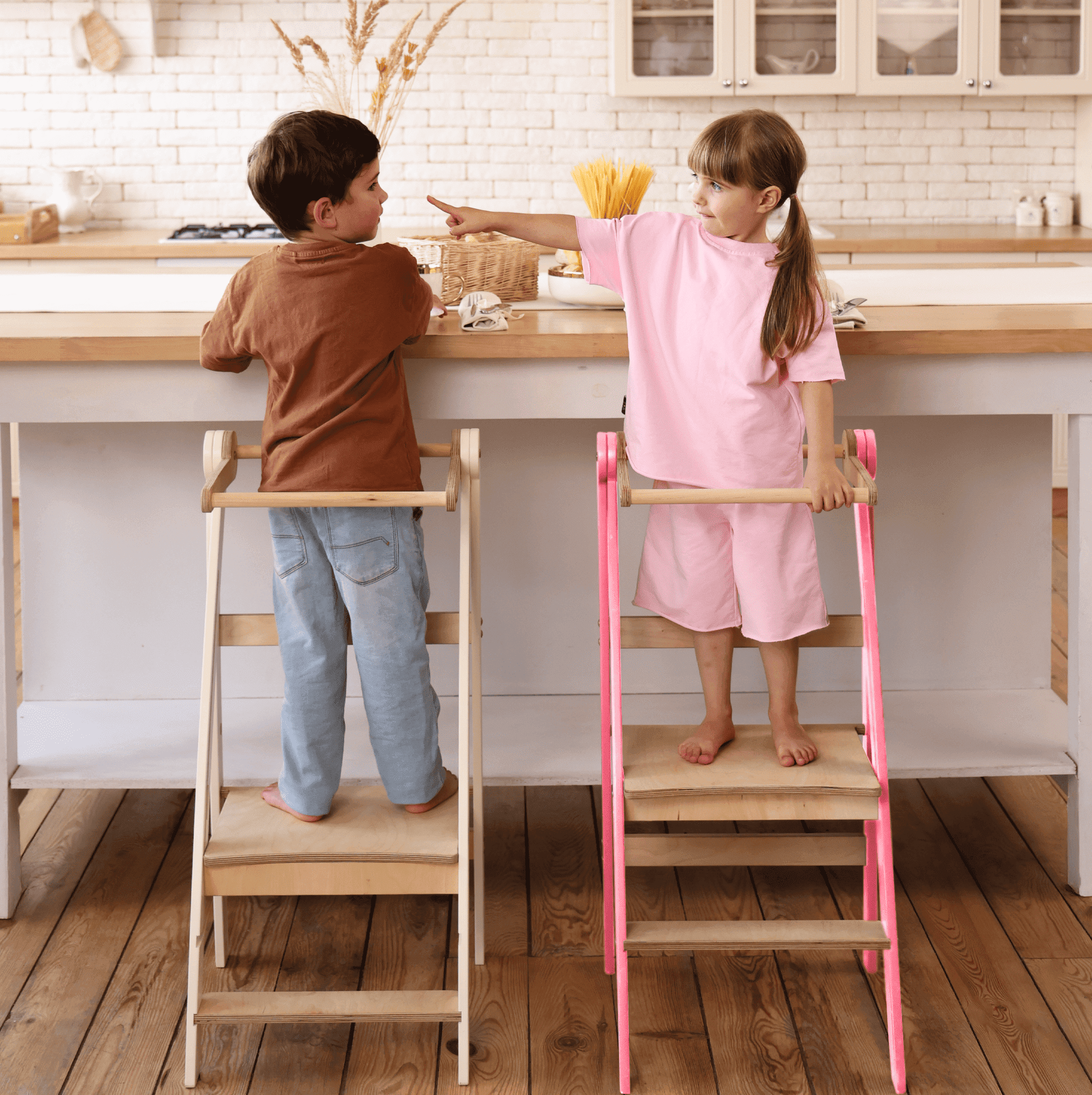 Ta stopnica za malčke pomaga najmlajšim varno sodelovati pri vsakdanjih opravilih. Trdna, večnamenska zasnova stolpa za malčke otrokom omogoča, da so del družinskih trenutkov – naj bo to pomoč v kuhinji, umivanje zob ali roke. Ta kuhinjska stopnica za malčke naredi učenje zabavno in interaktivno, s čimer gradi samozavest, neodvisnost in pomembne življenjske veščine!