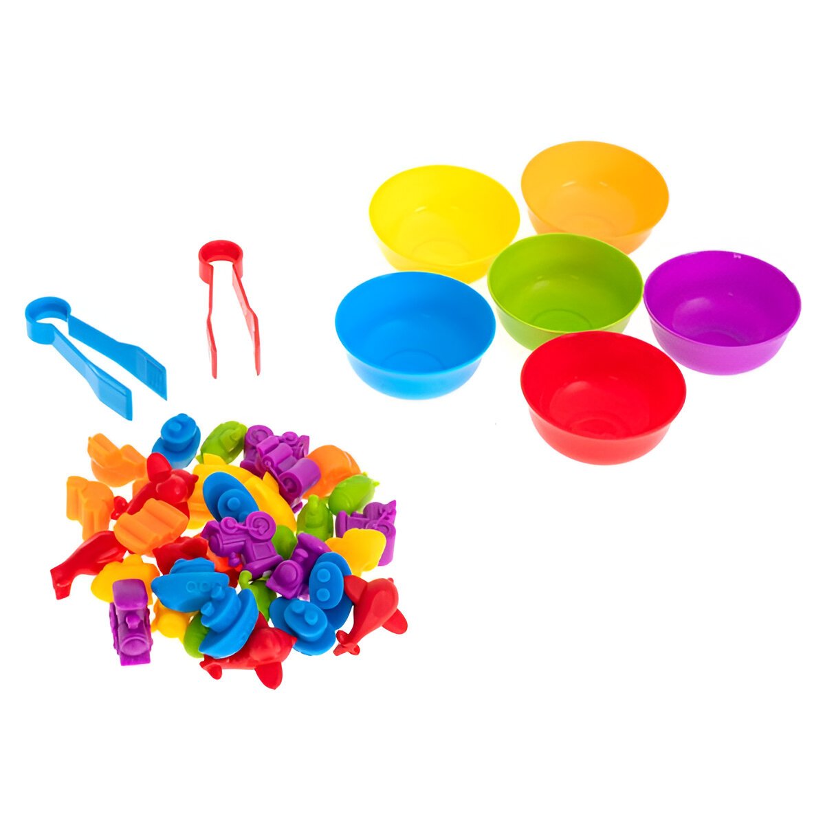 Paket vsebuje sklede, ki otrokom nudijo prostor za urejanje in razvrščanje transportnih vozil. S priloženimi kleščami bodo otroci lahko natančno upravljali z vozili in izboljšali svojo fino motoriko. Poleg tega bo igranje odlična dogodivščina, med katero bo otrok vadil koncentracijo in potrpežljivost ob učenju imen vozil.